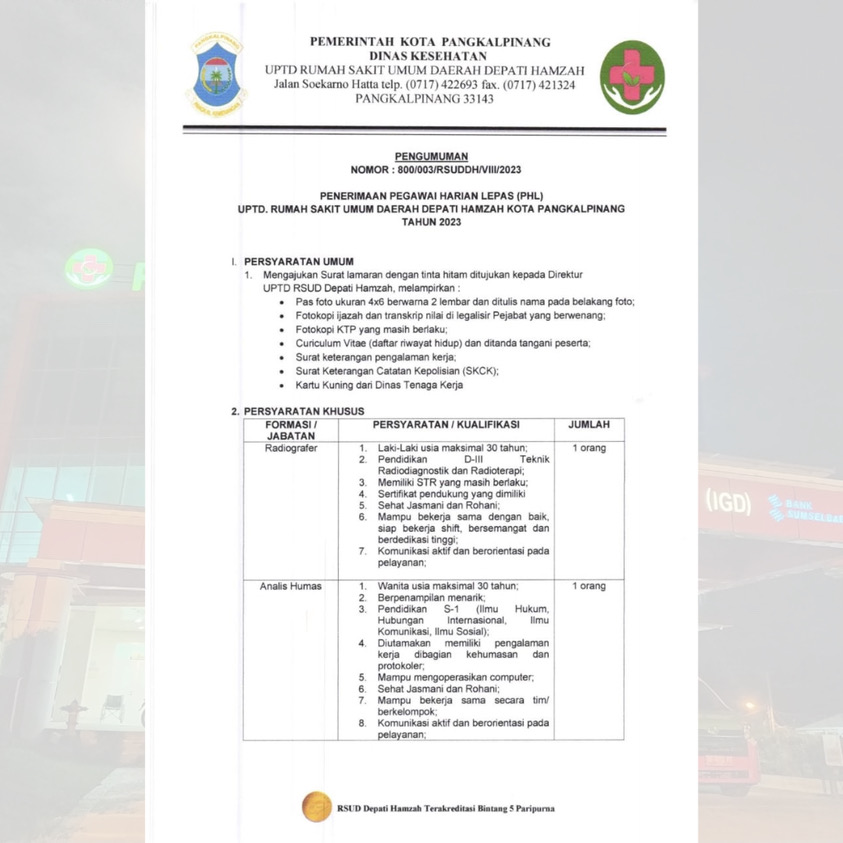 Pegawai PHL Radiografer & Analis Humas-RSUD Depati Hamzah Pangkalpinang
