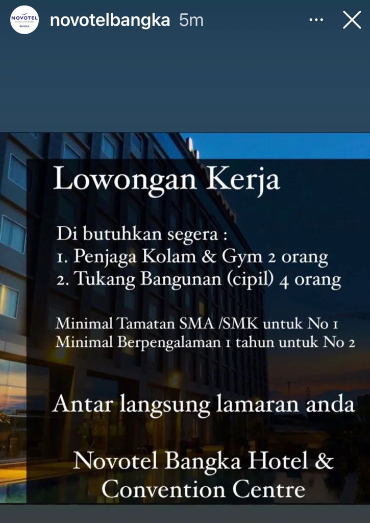 Penjaga Kolam-Gym(2 personil) & Tukang Bangunan(4 personil) @novotelbangka
