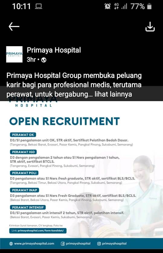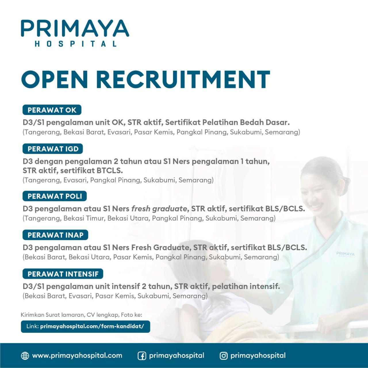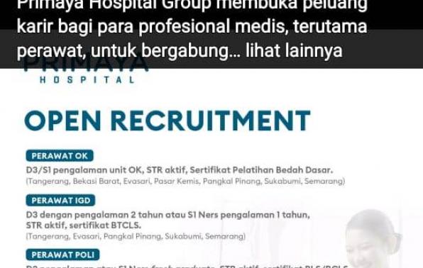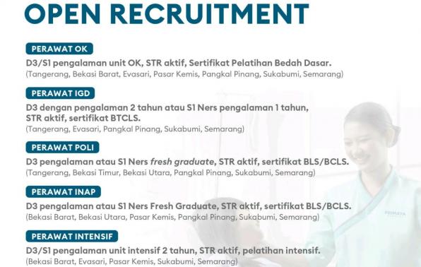 Perawat Bagian(OK,IGD,Poli,iNAP) @Primaya Hospital-Bhakti Wara-Pangkalpinang