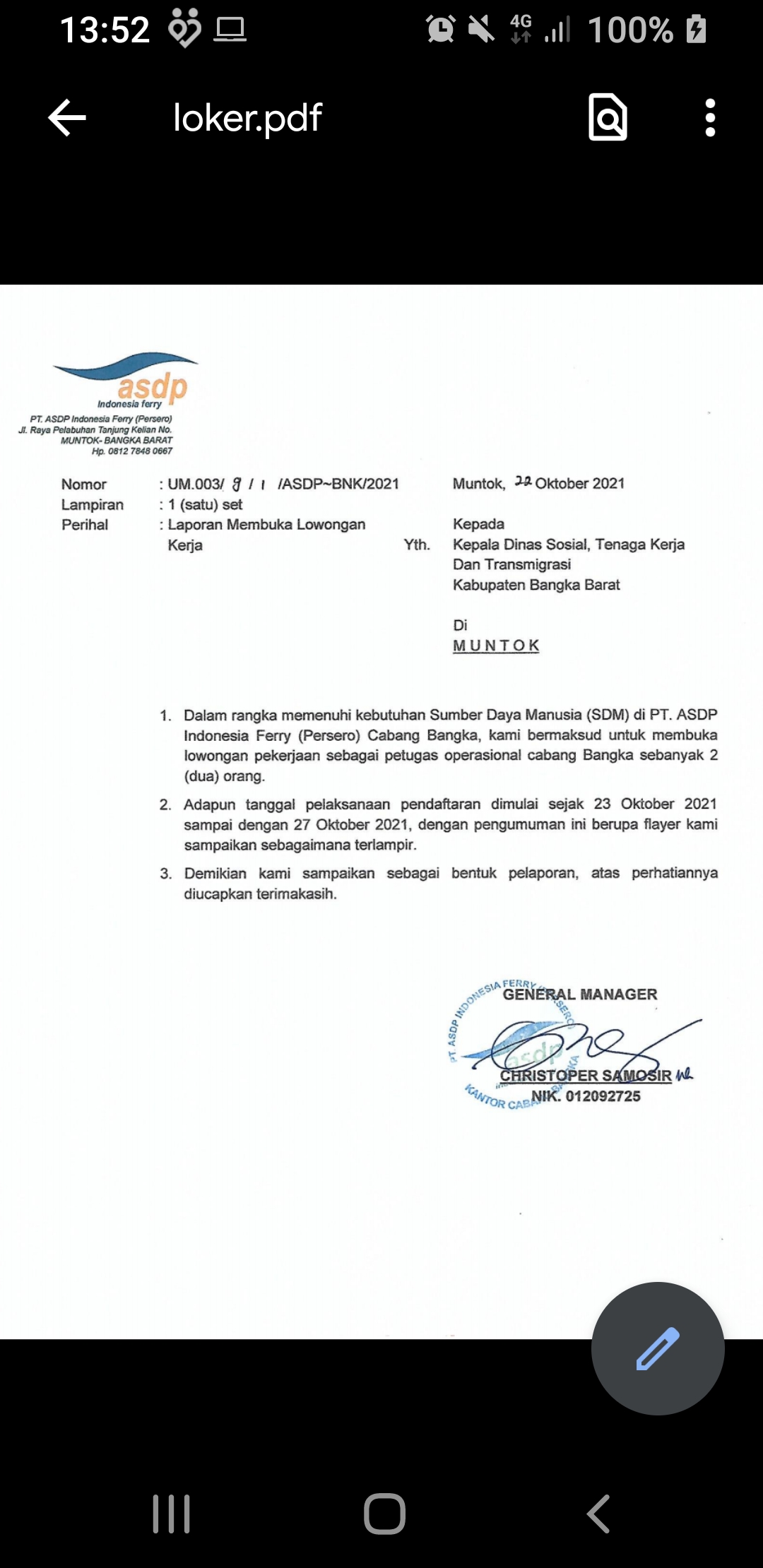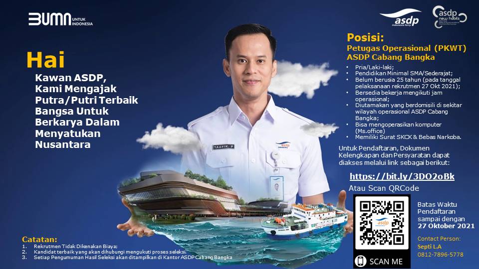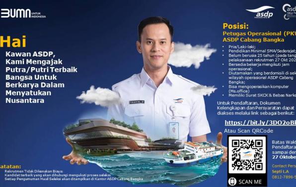 info Loker Petugas Operasional(PKWT) ASDP cabang Bangka