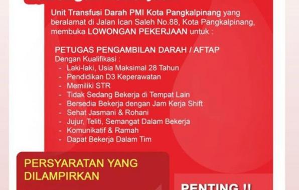 membuka kesempatan kerja sebagai PETUGAS PENGAMBIL DARAH/AFTAP.