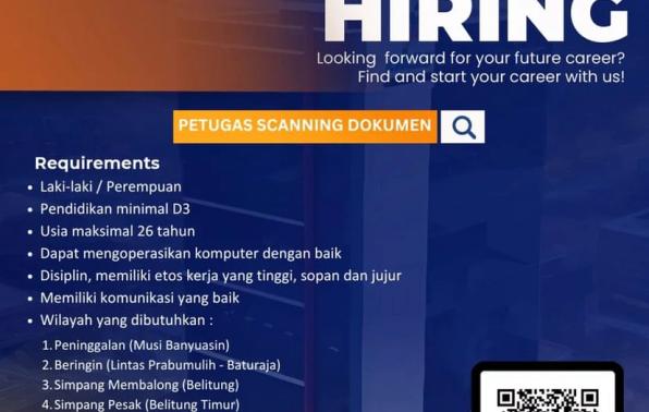- Petugas Scanning Dokumen(penempatan simpang Membalong-Belitung & Simpang Pesak-Belitung Timur)