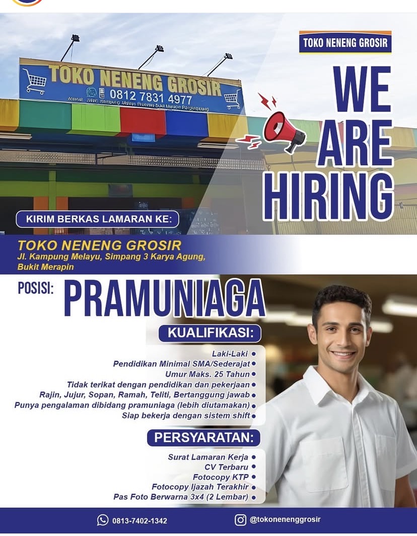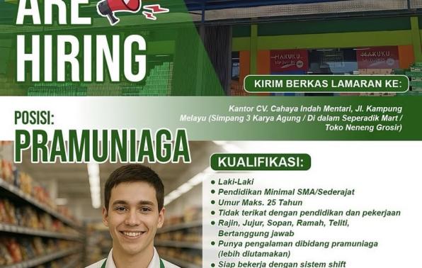 SEPERADIK MART ( Retail Lokal) membuka kesempatan kerja untuk posisi PRAMUNIAGA.
