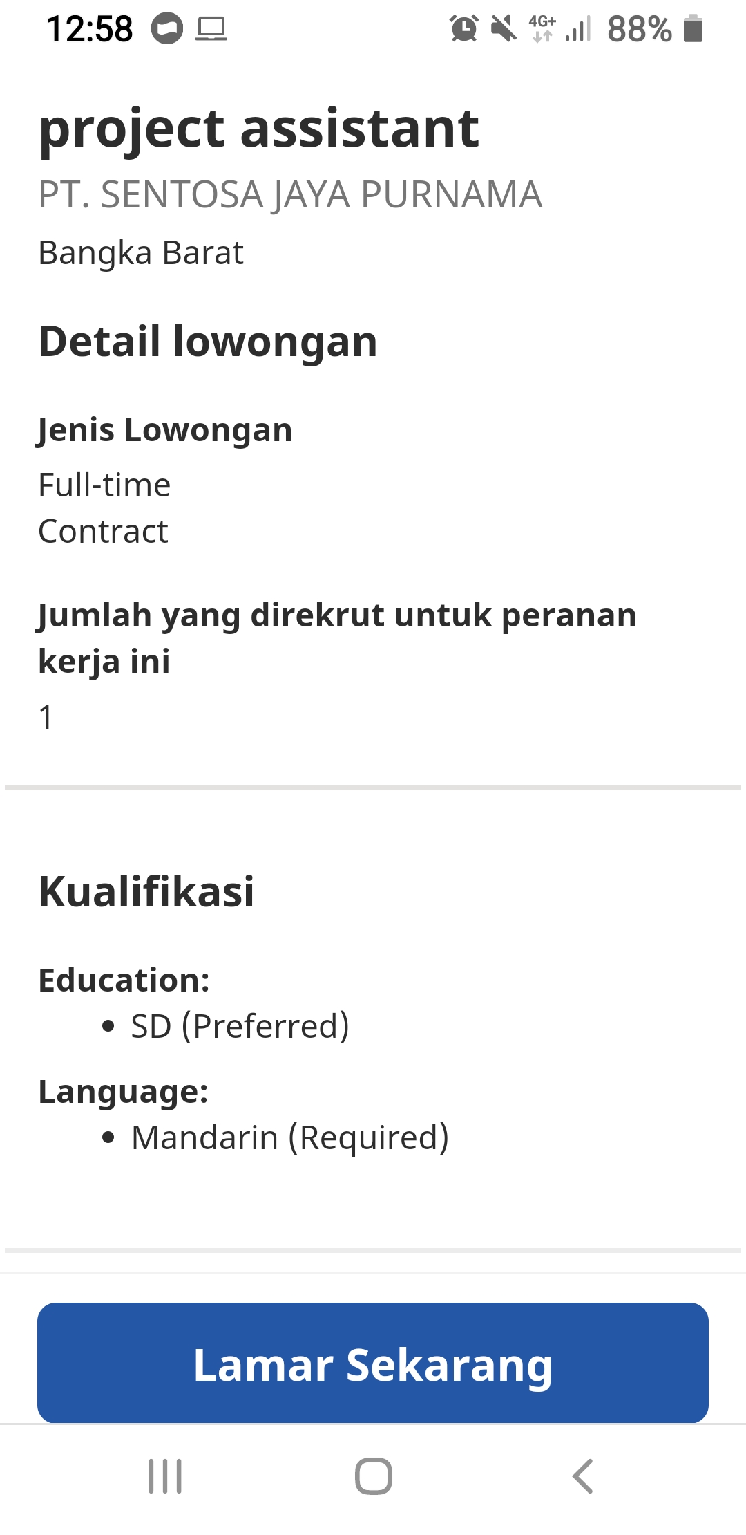 Project Assitant @PT.Sentosa Jaya Purnama-South Bangka