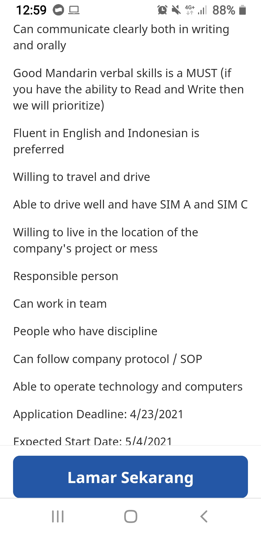 Pendaftaran secara online di link: https://id.indeed.com/viewjob?from=appshareios&jk=825c4c24da3374d2