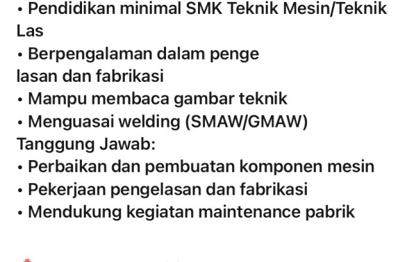 - Mekanik Pabrikasi( 1 Personil)