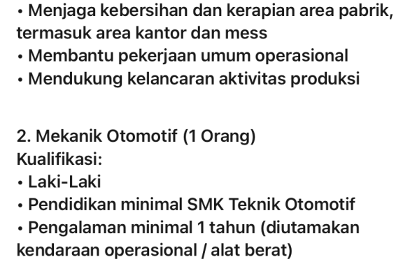 - Mekanik Otomotif( 1 Personil)