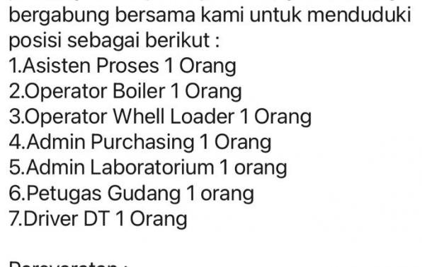 PT Mitra Agro Sembada saat ini membuka peluang untuk putra putri Bangka Belitung bergabung bersama kami untuk menduduki posisi sebagai berikut :