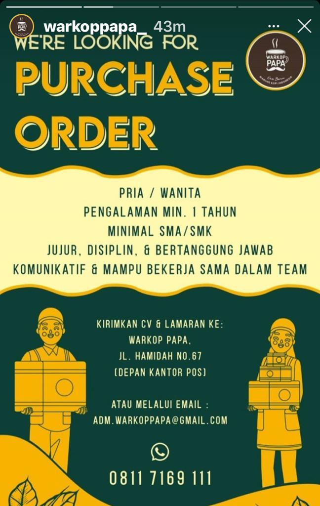 Info Loker Purchase Order Warkoppapa @Pangkalpinang