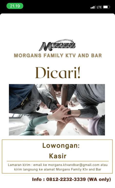 PURCHASING, WAITER/CLEANING SERVIS & KASIR @Morgans Family KTV & BAR-Pangkalpinang