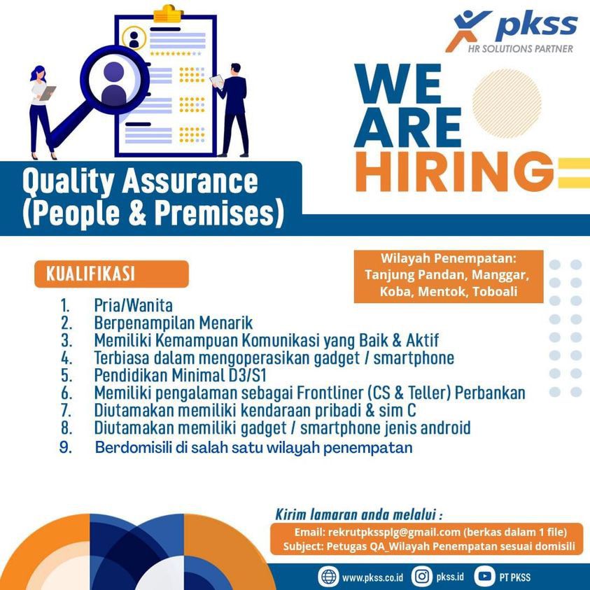 Quality Assurance-PKSS Palembang-penempatanTanjung Pandan,Manggar,Koba,Muntok & Toboali