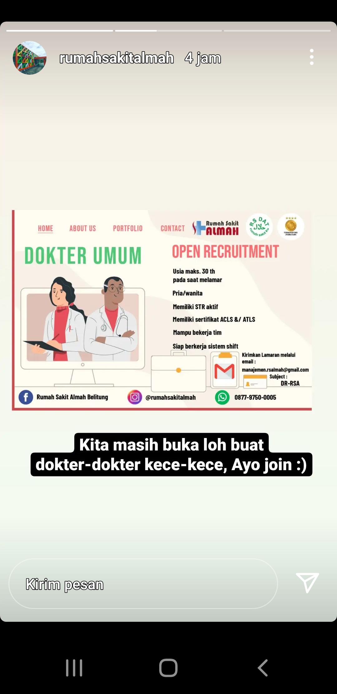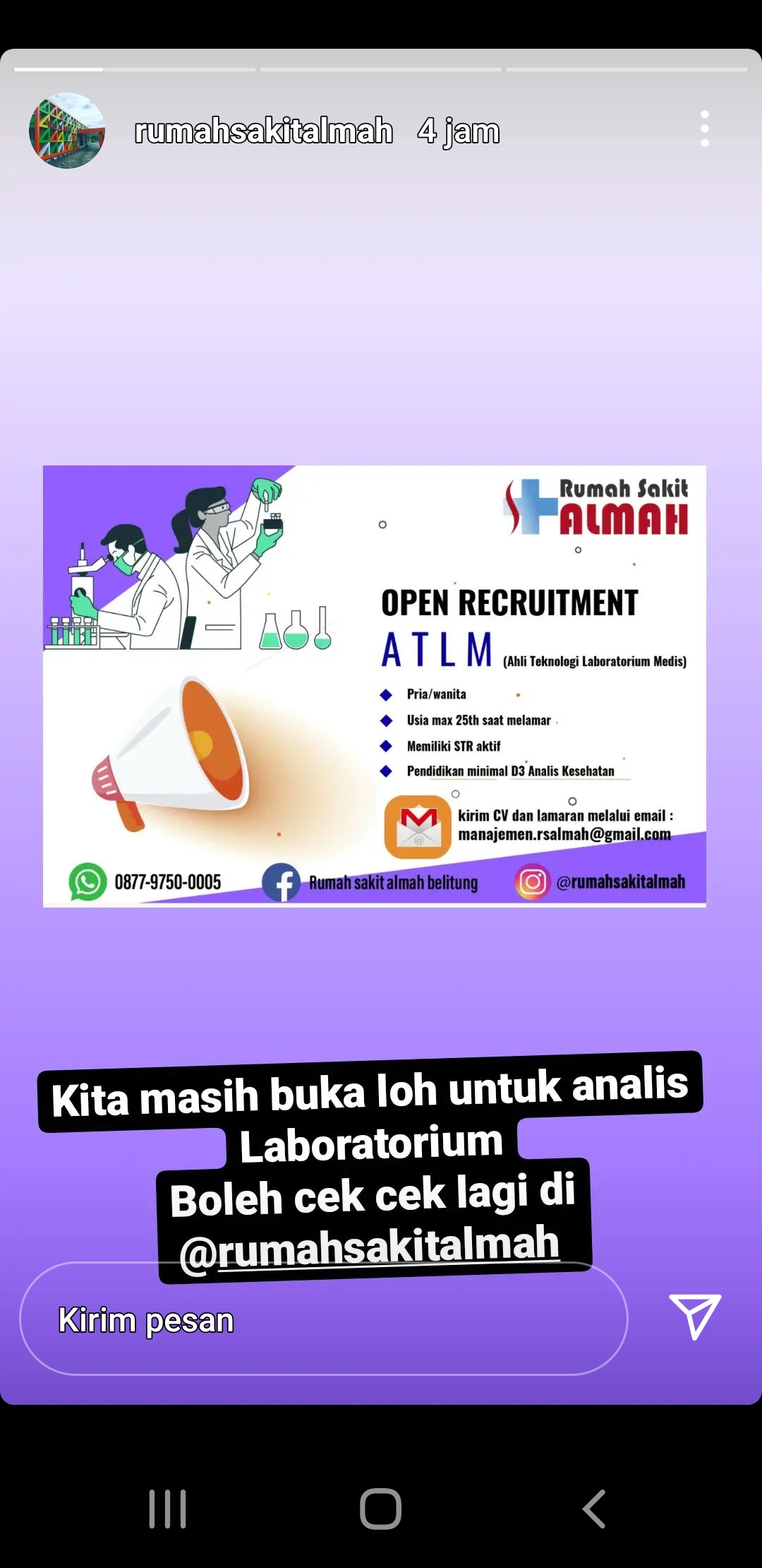 Radiografer,Registrasi-Kasir,Analis Lab,Dokter Umum,perawat @rumahsakitalmah-Belitung