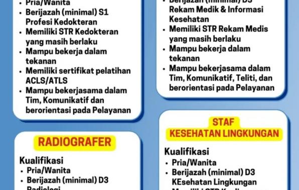 Rekam Medis,Radiografer,staf kesehatan Lingkungan & dokter umum tetap-Rumah Sakit Arsani-Sungailiat Bangka