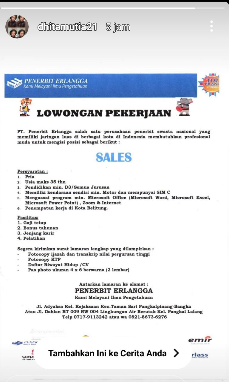SALES-Penerbit Erlangga @Belitung.