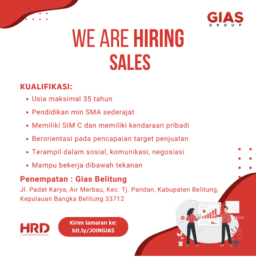 PT Global Indonesia Asia Sejahtera/PTGIAS membuka kesempatan kerja untuk posisi SALES penempatan Belitung