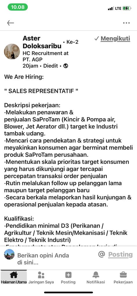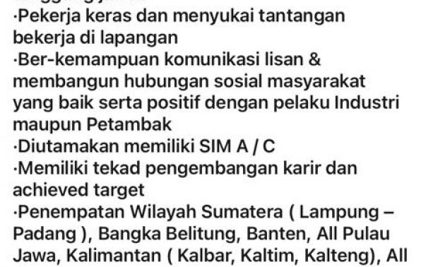 Sales Representatif-PT AGP-penempatan Bangka Belitung