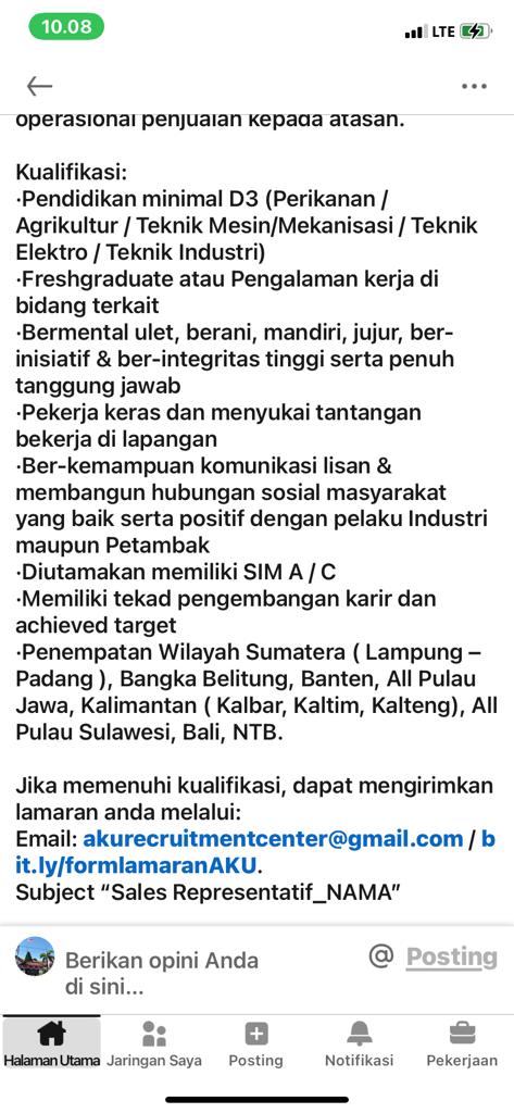 Pendaftaran di Link : http://bit.ly/formlamaranAKU
