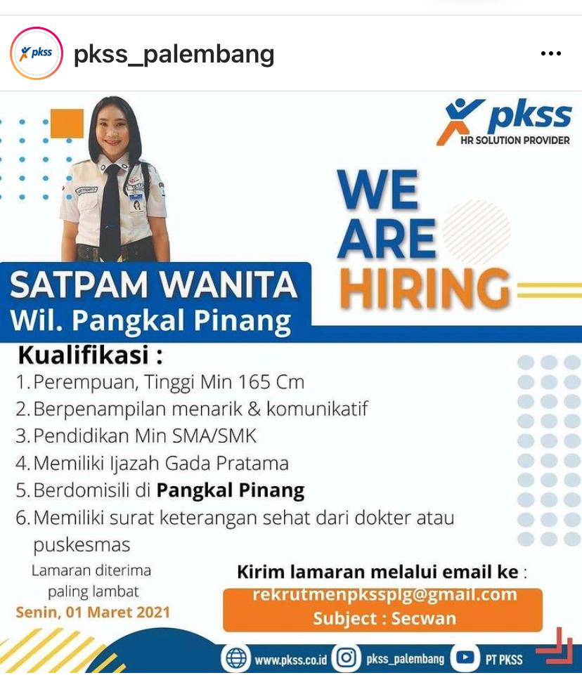 Berkas LamaranĀ  paling lambat Hari Senin,01 Maret 2021.
