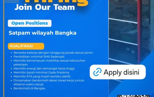 PT Prima Karya Sarana Sejahtera(institusi Rekrutment tenaga kerja) membuka kesempatan kerja untuk posisi Satpam wilayah penempatan Bangka.