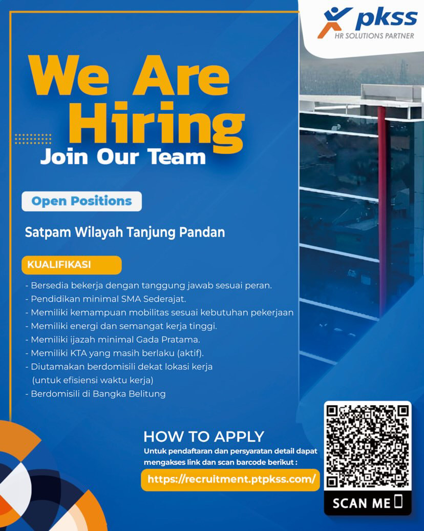 PT Pima Karya Sarana Sejahtera (PKSS) perusahaan Perekrutan Tenaga kerja membuka kesempatan kerja untuk posisi SATPAM penempatan Belitung-TanjungPandan).