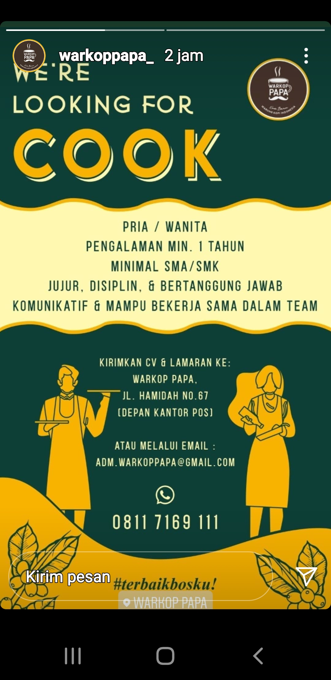 info loker sebagai COOK di Restoran @Pangkalpinang