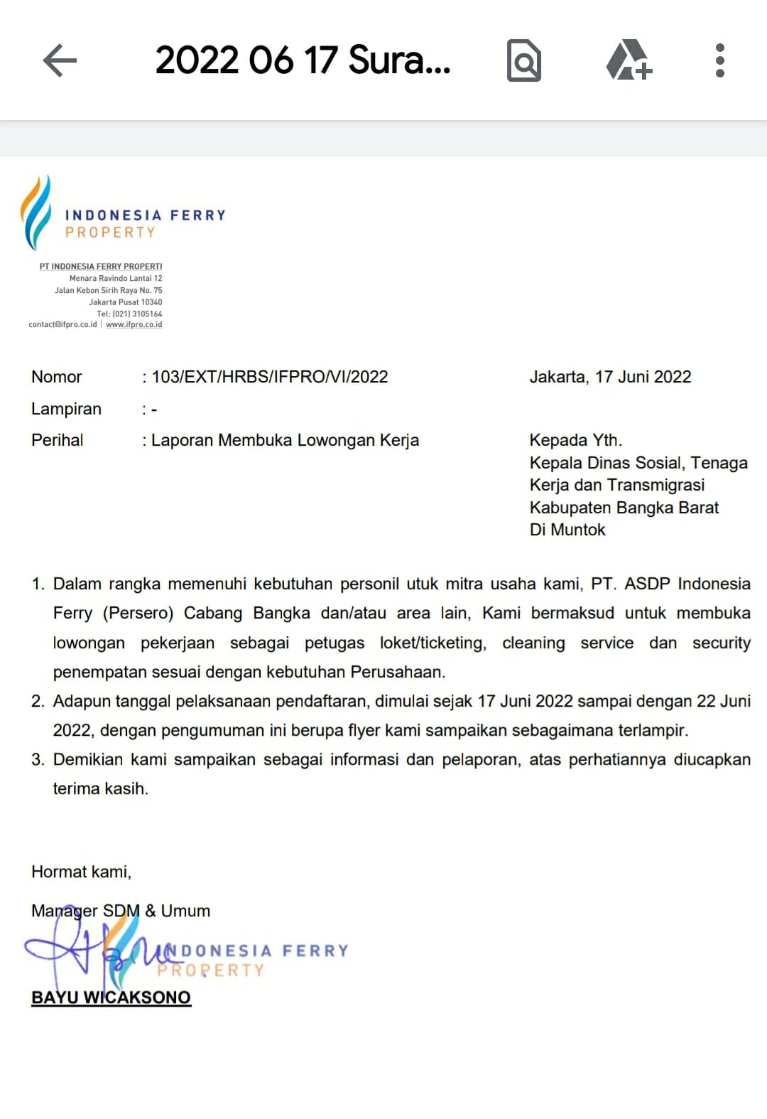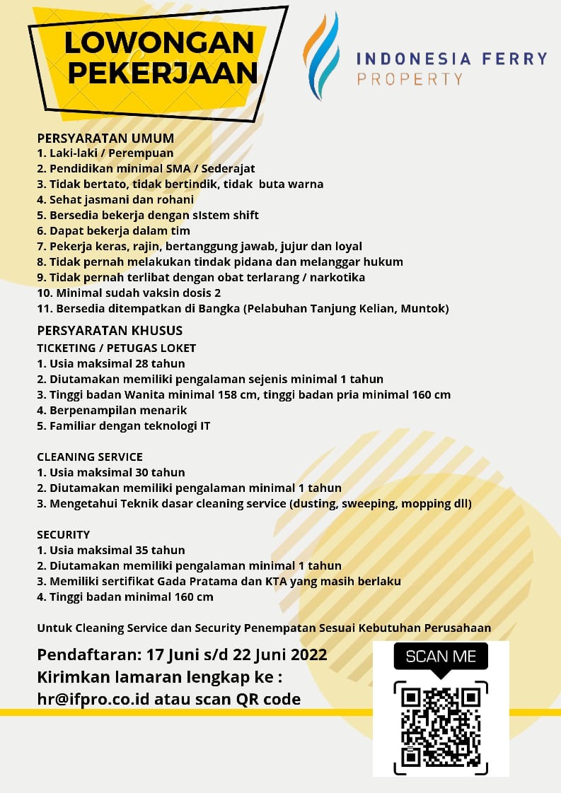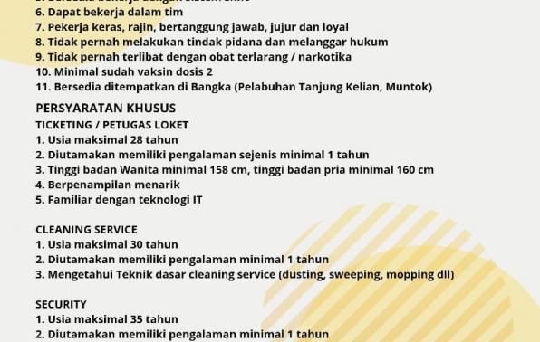 info Loker Security,Ticketing & Cleaning Service-PT ADSP Indonesia Ferry(persero)-Cabang Bangka
