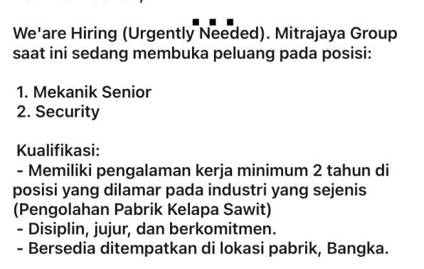 Mitra Jaya Group membuka kesempatan kerja untuk posisi: