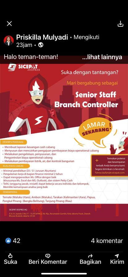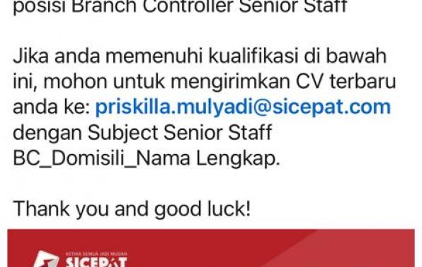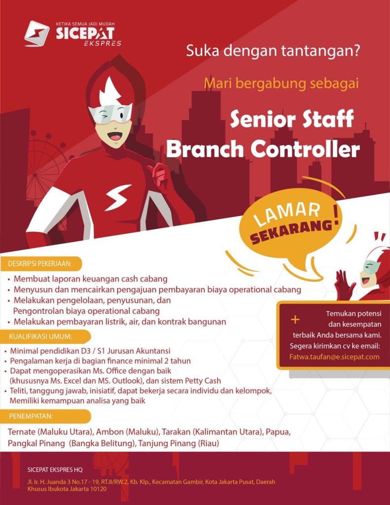 Senior Staff Branch Controller @sicepatexpres-Pangkalpinang