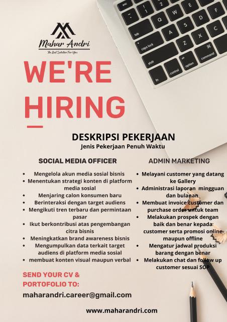 posisi SOCIAL MEDIA OFFICERA dan ADMIN MARKETING-Mahar Andri-Bangka