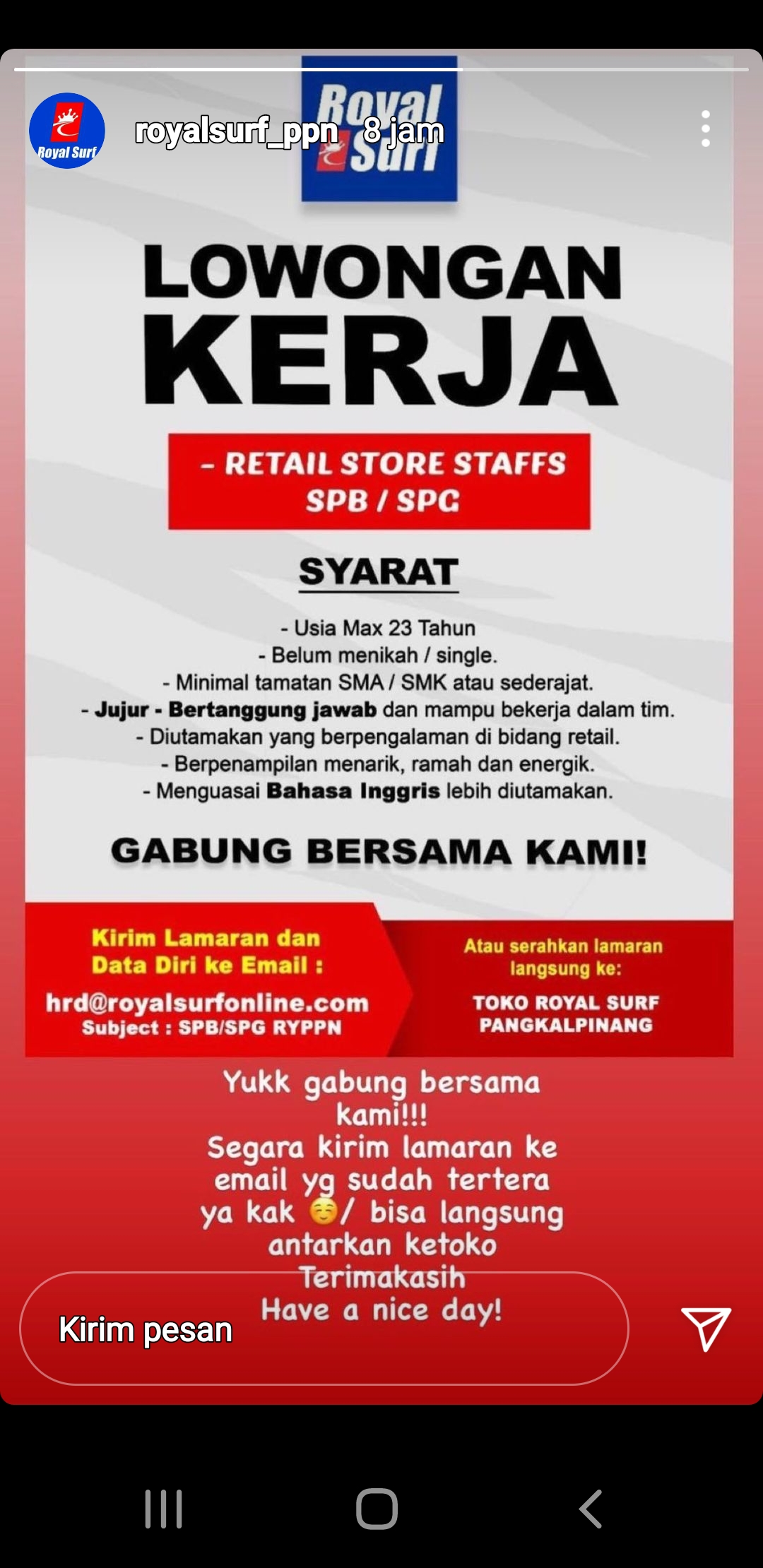 SPB & SPG-RetailĀ Store Staff @Pangkalpinang