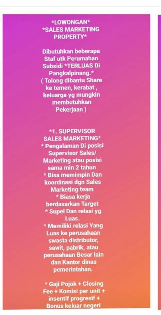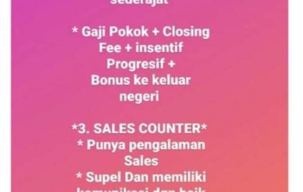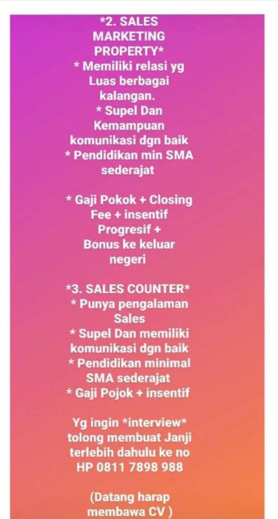 info Loker SPV Sales Marketing,Sales Marketing Property & Sales Counter @Pangkalpinang