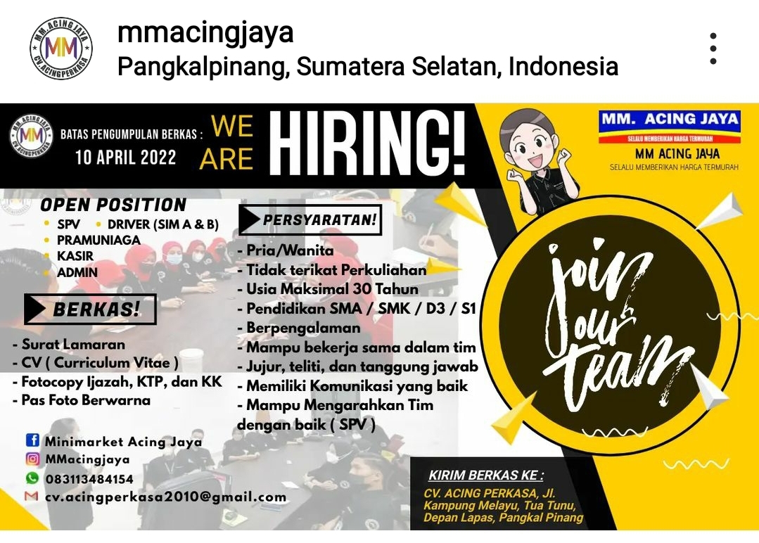 info Loker SPV,Pramuniaga,Admin, kasir,Driver Sim A / B-Pulau Bangka