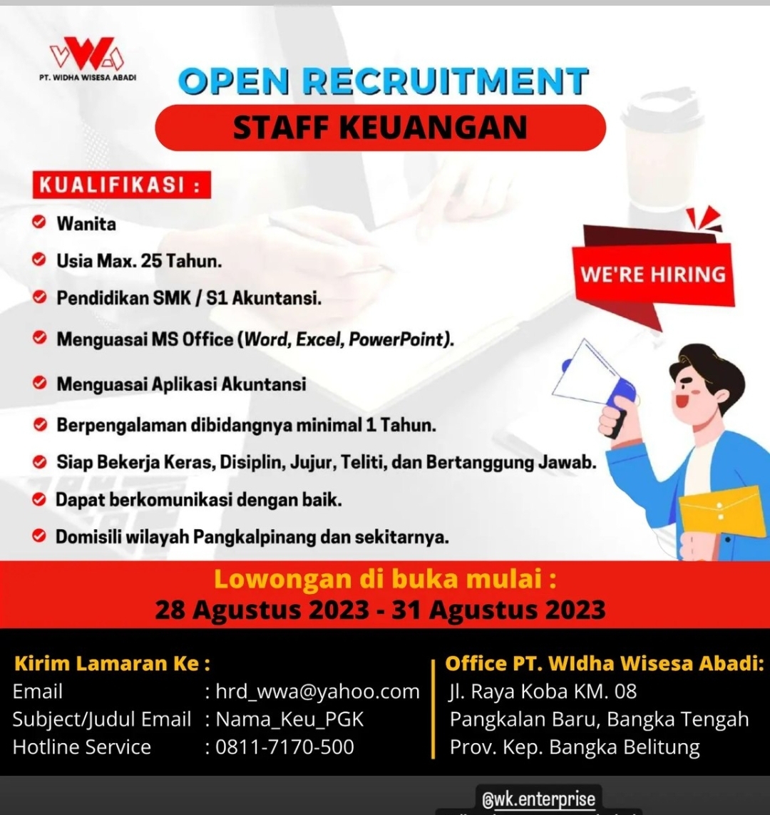 info Loker Staf Keuangan-PT Widha Wisesa Abadi-Pangkalpinang