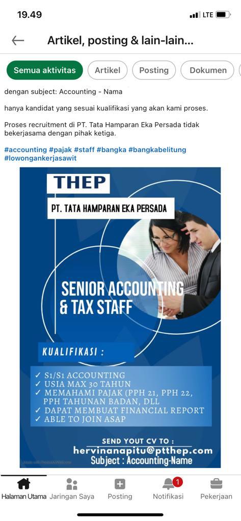 Staff Accounting @PT.THEP-Bangka Belitung