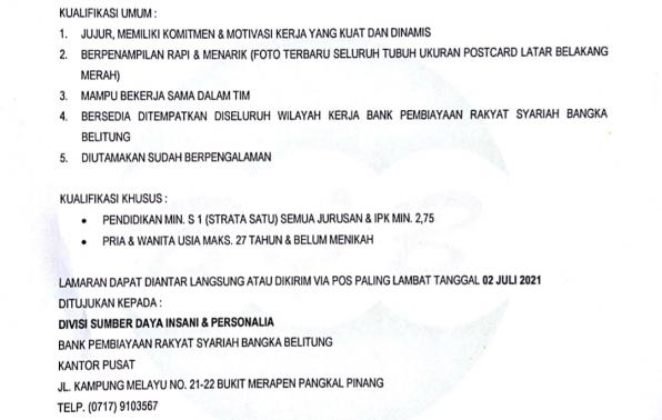 Staff Audit Internal Staf Marketing @BPR Syariah Bangka Belitung