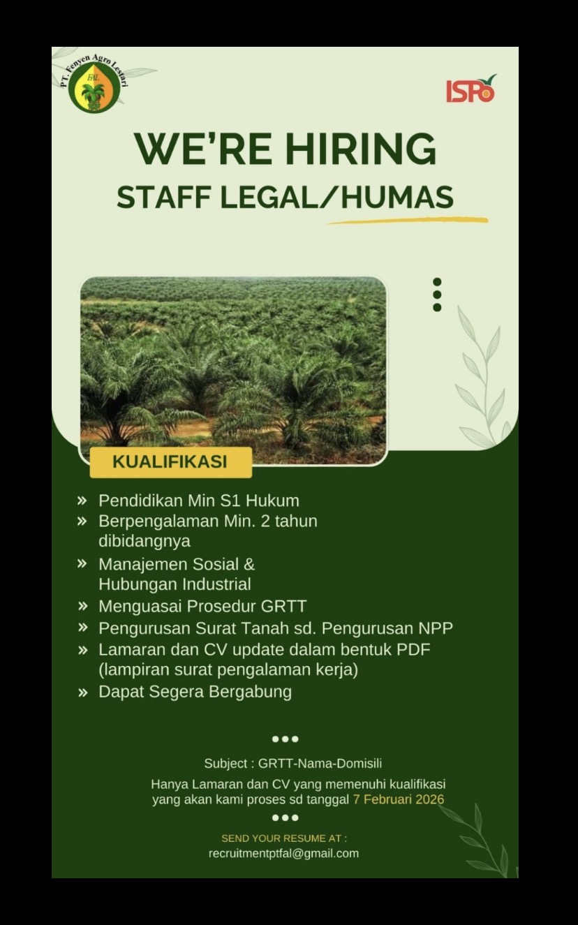 info LOker Staff Legal/Humas-PT FENYEN AGRO LESTARI