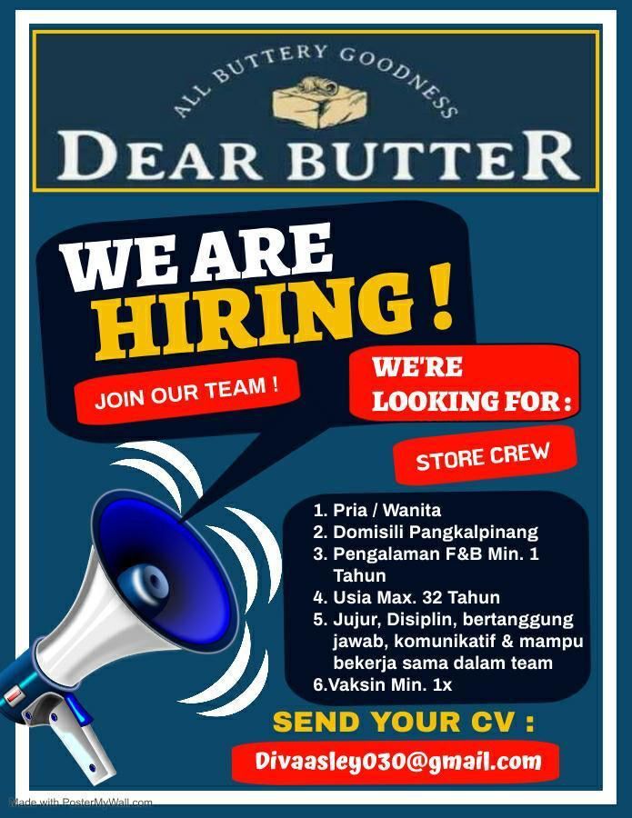 Store Crew-F&B @Dear Butter-Pangkalpinang