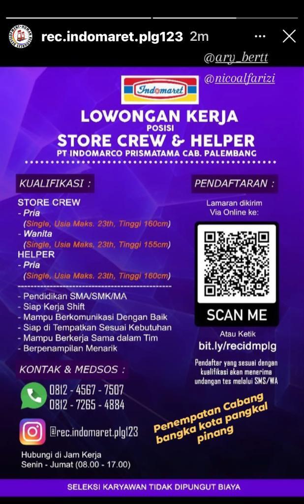 info Loker Store crew & Helper Indomaret @Pangkalpinang