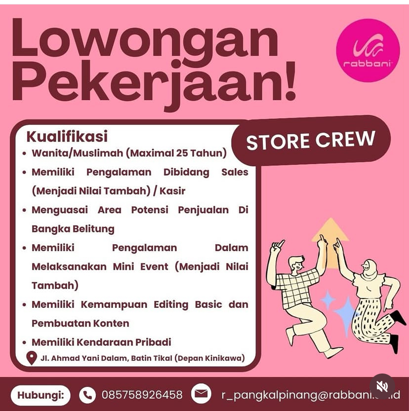 Rabbani Pangkalpinang membuka kesempatan kerja untuk posisi: Strore Crew