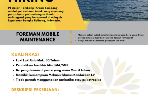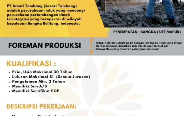 Arsari Tambang Bangka membuka kesempatan kerja untuk posisi: