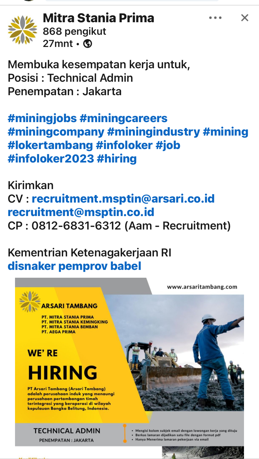 Mitra Stania Prima membutuhkan personil untuk menempati posisi TECHNICAL ADMIN penempatan Jakarta