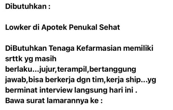 Tenaga Kefarmasian @Jalan Koba-Pangkalan Baru