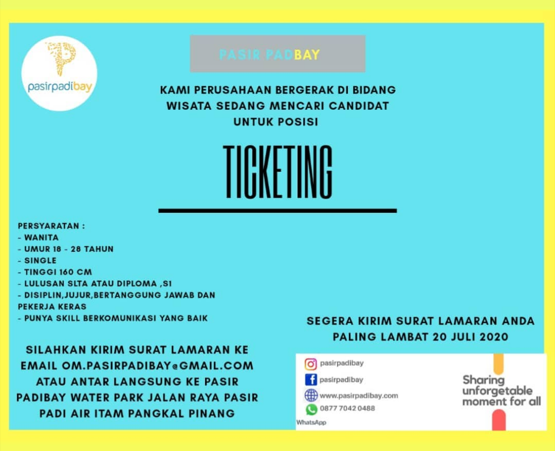 Bergerak di bidang wisata mencari kandidat untuk posisi sebagai TICKETING.