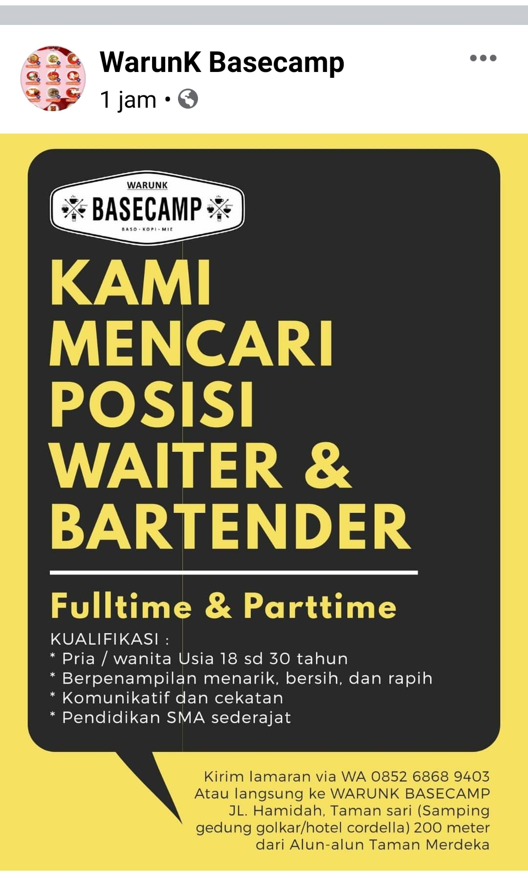 info Loker Waiter & bartender @Pangkalpinang