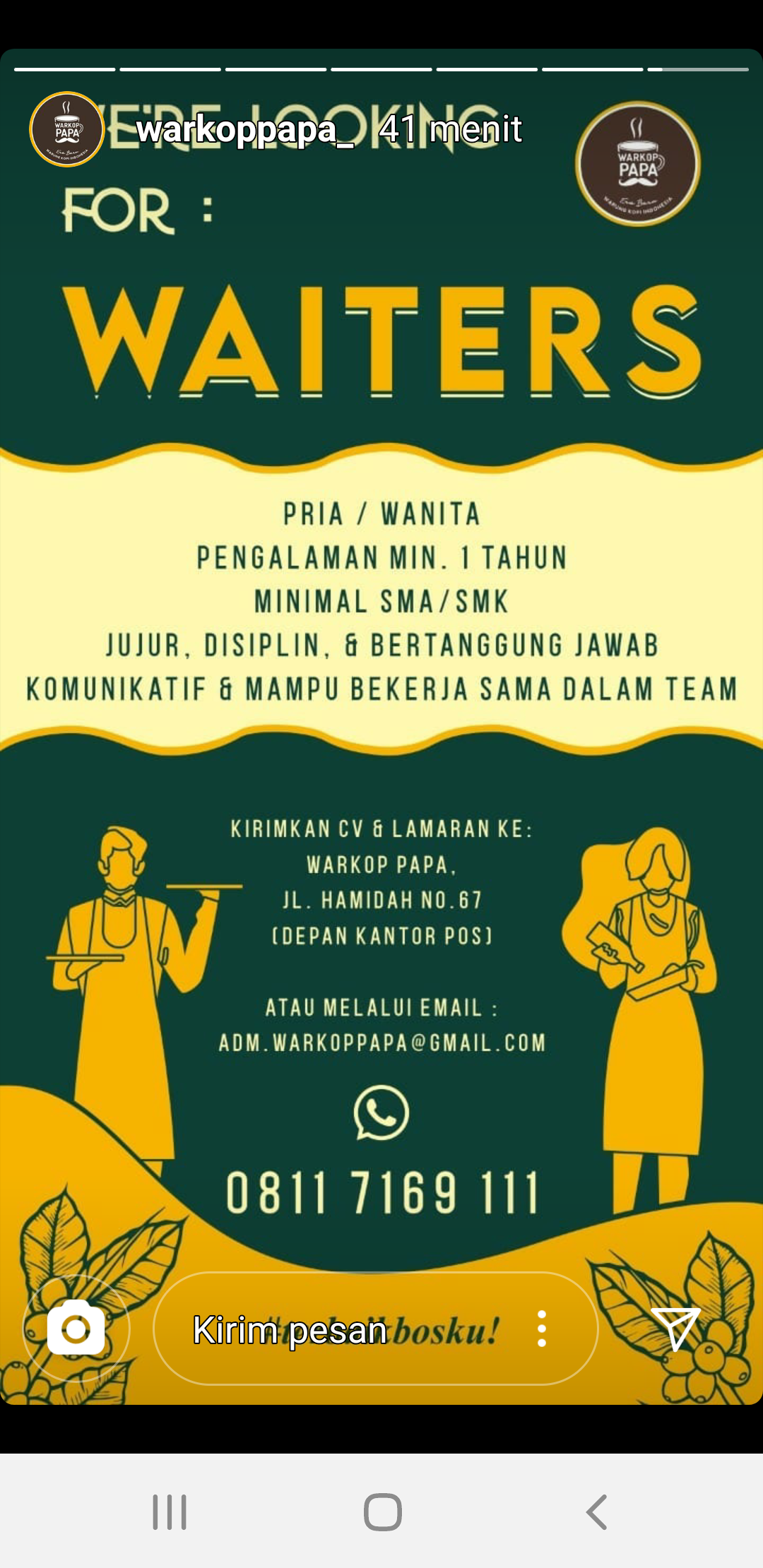 membutuhkan tenaga WAITERS @Pangkalpinang.