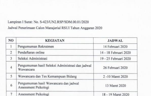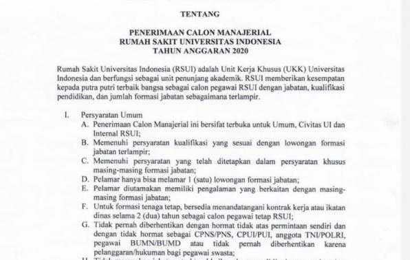 Penerimaan Calon Manajerial Rumah Sakit Universitas Indonesia