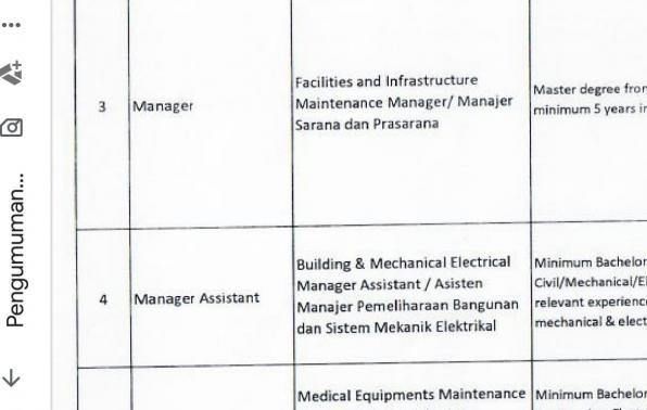 3. Manager Facilities & Infrastruktur Maintenance .