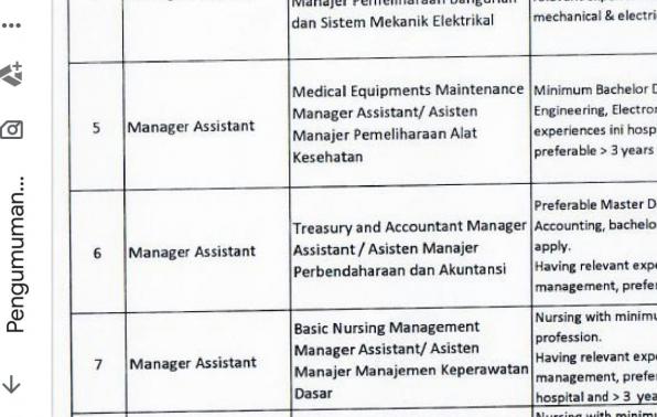 6. Manager Assistant Treasury & Account Manager Assistant.