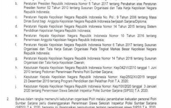 Penerimaan Siswa Sekolah Inspektur POLISI Sumber Sarjana ( SIPSS) Tahun Anggaran 2020