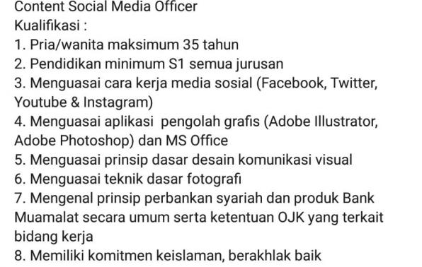 Assalamualaikum Mapers Bank Muamalat membukan lowongan bagi kamu yang memenuhi kriteria di bawah ini: